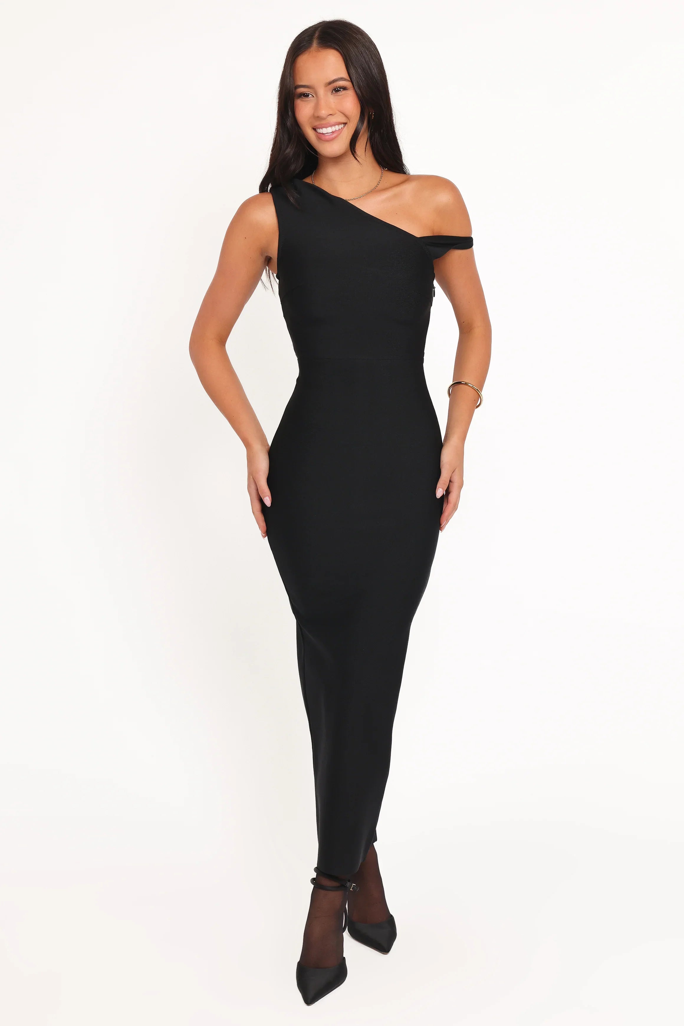 The Hudson Off Shoulder Midi Dress in Black is your go-to piece for effortless sophistication. The off-shoulder design creates an alluring silhouette that highlights your collarbones, while the asymmetrical neckline adds a modern twist that sets you apart from the crowd.